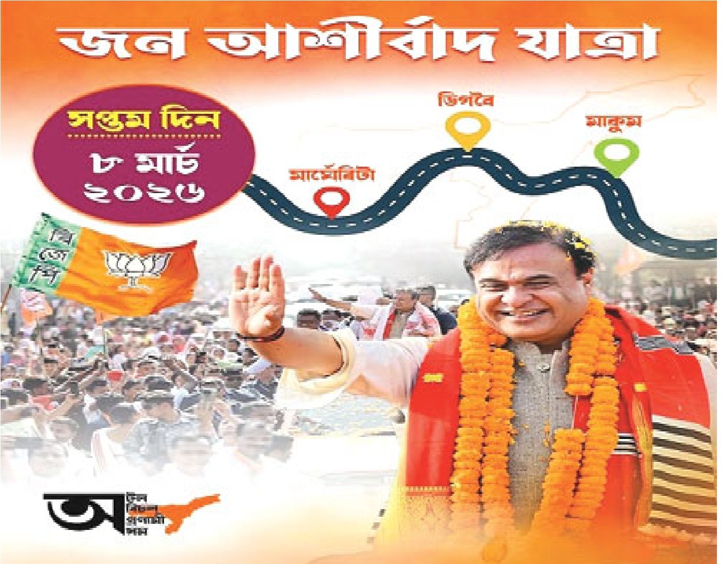 भाजपा का जन आशीर्वाद यात्रा, गोलाघाट में मुख्यमंत्री सरमा की यात्रा March 7, 2026 No Comments Read More »